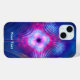 A multi-coloured fractal image resembling asymptotic grooves in glass; with lights of contrasting colours showing through. Customise by adding your own text.