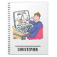 Whilst online banking a man gets offered a virtual pen and chain. Funny banking themed cartoon in colour.
