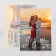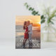 Tell the world your happy news with photo wedding Save the Date Cards that you mail as a postcard. The words AT LAST and your wedding date on the front (change it to anything!) in white text overlays your photo. A landscape photo on the back is under your save the date details. We used the same photo on the front and back and enlarged and cropped the landscape photo to a 5 x 7 image to fit on the front. You can use two different photos, too. Choose High-Definition printing option for better photo quality. Choose Matte paper for heavier paper but might have less photo clarity.