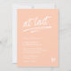 Modern wedding invitation featuring a simple design with "at last" in a handwritten brush script typography along with a hand drawn heart in the lower right corner. The colour palette is white over a peach background and may be changed in the design editing tool. The simplicity of the layout adds an elegant touch to this modern wedding invitation.