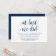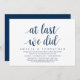 Modern Script in Classy Navy Blue themed, wedding elopement invitation card (At last, we did). It is perfect for your wedding elopement casual lakeside wedding dinner, dancing and party.
