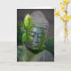 Garden Buddha statue with yellow hibiscus bud overlaid