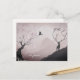 This "at peace" postcard features a Japanese style mountain landscape with a pink full moon, a beautiful pink flowering tree. There is a crane taking off from a tree branch flying ready to fly across the moon image and a deer standing in the foreground with antlers that are tree branches with spring buds. Back Greeting ~ "be at peace in all that you do...". The greeting can be personalised to read as you wish.