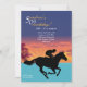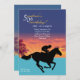 Make it a special occasion by inviting guests with this unique invitation. The beautiful background features a horse and jockey silhouette racing across the card. The card is easy to customise with your wording, font, font colour and choice of six paper types.