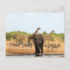 Elephant, giraffe and zebra at a waterhole in Etosha National Park, Namibia