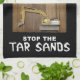 A duck mount featuring an oiled, dead Mallard duck, earth moving equipment, and a skull and crossbones. Text reading "STOP THE TAR SANDS" also appears. Woe to any waterfowl landing in a toxic tailings pond in Alberta where a extremely viscous petroleum is extracted from tar sands (aka oil sands) with horrible environmental effects. The Alberta tar sands consist of heavy crude oil mixed with sand, clay and bitumen. Extraction entails burning natural gas to generate enough heat and steam to melt the oil out of the sand. As many as five barrels of water are needed to produce a single barrel of oil. Every day millions of gallons of water are contaminated with chemicals, including arsenic, copper, lead and zinc, to basically separate tar sands oil (called diluted bitumen) from the sand. But the water is so contaminated after this process that they have to store it in toxic sludge pits called tailings ponds. It is estimated that 3 millions gallons of contaminated water leaks from tailing ponds into Alberta's Athabasca River, and the surrounding landscape, every day. Please say no to tar sands.