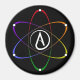 The Atheist Atom Symbol represents science, atheism, and the pursuit of knowledge and truth. The rainbow colors represent respect and acceptance for human diversity and LGBTQIA people.