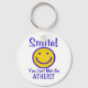 Put a human face on Atheism with a bright yellow face outlined in blue with blue letters that says: "Smile! You just met an ATHEIST."