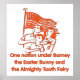 A family salutes the flag and pledges their loyalty to "One nation under Barney, the Easter Bunny, and Almighty Tooth Fairy." Great Atheist t-shirt gift for you or friends and family.