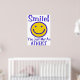 Put a human face on Atheism with a bright yellow face outlined in blue with blue letters that says: "Smile! You just met an ATHEIST."