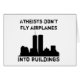 Picture of the world trade centre twin towers before the attack on september eleventh (911 nine eleven 9 11) with the caption "atheists don't fly aeroplanes into buildings. On september eleventh, the world trade centre was ruthlessly destroyed. Not by a government or a mad scientist or even someone with financial motivations. It was destroyed by a fundamentalist religious group. Nine Eleven was a faith based initiative. Fundamentalist islamic muslims murdered thousands of american citizens in cold blood in the name of god. Funny then that atheists are the nations least trusted minority. Especially so when considering that atheists don't fly aeroplanes into buildings.