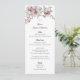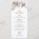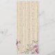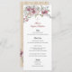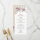 Mauve florals and leaves accent this menu with a natural wooden back. A simple cross is placed at the top.