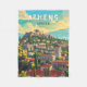 Athens retro vector travel design. The city is still dominated by 5th-century BC landmarks, including the Acropolis, a hilltop citadel topped with ancient buildings like the colonnaded Parthenon temple.