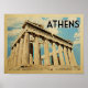Athens vintage travel poster featuring Greek parthenon ruins. For Athens gifts, this art print makes the perfect souvenir or memento.