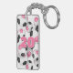 This fun soccer themed keychain features the image of a bunch of varied size bright pink, black and white soccer balls and can be personalised with the athlete's name on the front and jersey number or monogram on the back - by katz_d_zynes