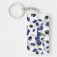 This fun soccer themed keychain features the image of a bunch of varied size blue, black and white soccer balls and can be personalised with the athlete's name on the front and jersey number or monogram on the back - by katz_d_zynes