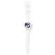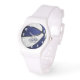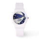 This sporty personalised basketball watch features a simple basketball graphic that has recolored alternating blue and white panels, upon which you can easily customise the athlete's name in a signature (or autograph) style font atop the player's jersey number (in a varsity letter style font), and white clock face numerals - by katz_d_zynes