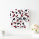 This soccer themed wall clock features the image of a cluster of varied size maroon, black & white soccer balls - customise with the athlete's name - by katz_d_zynes