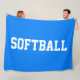 Athletic Bold White SOFTBALL Text On Bright Blue Fleece Blanket