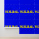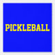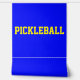 This sporty bold design features bright yellow athletic pickleball text against vivid blue background.