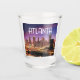 Atlanta, Georgia photo with the bright lights of the city skyline at dusk and the name Atlanta at the top in a deco font.