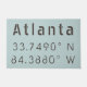 Atlanta, GA latitude and longitude map coordinates in modern industrial style grey font on light blue background.