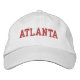 Atlanta Red embroidery on White cotton hat. Makes a wonderful gift for anybody who loves Atlanta GA! If you would prefer to have your personal text then simply select "Personalise this template" details button to enter your choice of custom text. Embroidery is also customisable to other colour choices by selecting the "Edit Design" tool button. Also available is the option to select choice of hat colour on the main item page.