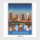 Sticker in an illustration of the Atlanta Georgia skyline at night, under a starry sky, with brilliantly reflected lights