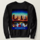 Sweatshirt in an illustration of the Atlanta Georgia skyline at night, under a starry sky, with brilliantly reflected lights