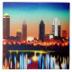 Ceramic tile in an an illustration of the Atlanta Georgia skyline at night, under a starry sky, with brilliantly reflected lights