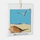 Ornament with a 2-dimensional sea gull image flying over the beach with waves. Date Customisable on back. Atlantic City, New Jersey on front in Baskerville Font