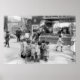 Old 1920s photo of opera singer Florence Macbeth giving candy to children, possibly in New York City or New Jersey. Concession stand behind her has signs for Atlantic City salt water taffy, 1921.
