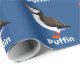 The Atlantic Puffin (Fratercula arctica) feeds primarily by diving in the water. They breed in large colonies on coastal cliffs or offshore islands in the North Atlantic. They shed the colourful outer parts of their bills after the breeding season, leaving a smaller and duller beak. Their short wings are adapted for swimming with a flying technique under water. In the air, they beat their wings rapidly (up to 400 times per minute) in swift flight, often flying low over the ocean's surface.