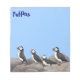 Puffins at rest on the rocks. Customisable text reading, "Puffins" also appears.