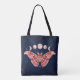 A celestial pink Atlas moth spreads its wings beneath a glowing sequence of lunar phases, set against a midnight sky scattered with shimmering stars. The balance of nature and cosmos creates a design that feels both grounded and otherworldly — perfect for anyone drawn to night skies, mystical beauty and boho vibes, this unique tote bag will add good energy to everyday outfits.