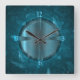 "Atmospheric Blue/Aqua Patterned >Wall Clock" Square Wall Clock