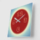 This square clock creates an Illuminiated effect with a lemon blue background with red centre. Minimalist Numerals in gold compete this trendy design. Customise to change the clock shape or add a frame.
