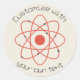 Custom round stickers with curved text and atom structure, ideal for any science themed event.