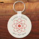Custom button keychain with curved text and atom structure, ideal for any science themed event.