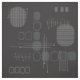 A mid century modern abstract art design that would have fit right in during the 1950s. Various shapes of oval circles and lines in black and dark grey.