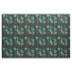Atomic Abstract Barkcloth Black Turquoise Fabric