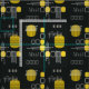 Atomic Abstract Barkcloth Black Yellow Fabric