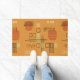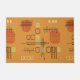 A mid century modern abstract art design that would have fit right in during the 1950s. Various shapes of oval circles and lines in ochre, orange and gold.