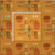 A mid century modern abstract art design that would have fit right in during the 1950s. Various shapes of oval circles and lines in ochre, orange and gold.