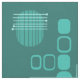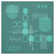 A mid century modern abstract art design that would have fit right in during the 1950s. Various shapes of oval circles and lines in dark teal and turquoise.