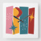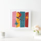 Make a statement on your wall with this bold atomic era mid century square wall clock. With its pink, orange, blue, and red rectangles, stars, and boomerang it’s sure to get a few “wows”!