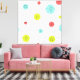 A unique mid century modern abstract art design with atomic era-inspired space age planets and starbursts.