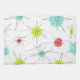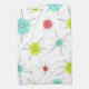 A unique mid century modern abstract art design with atomic era-inspired space age planets and starbursts.