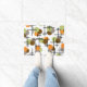 A retro atomic era inspired pattern with brown, orange, grey and chartreuse molecule circles, along with mid century modern styled bold lines.