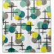 A retro atomic era inspired pattern with teal, turquoise, grey and yellow molecule circles, along with mid century modern styled bold lines.